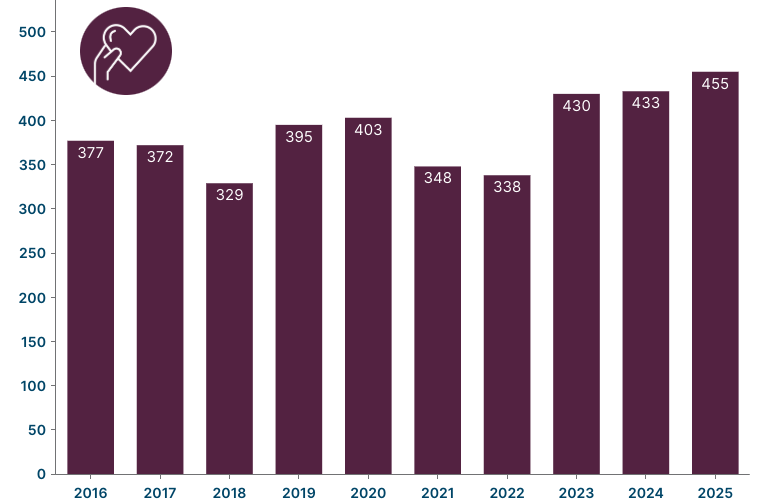 Hvor mange stod på venteliste til et nyt organ ved årets udgang? Hvor mange danskere har registreret deres holdning til organdonation i Organdonorregistret? Hvor gammel var den ældste donor? Find svarene og mange flere tal og fakta om organdonation her på siden.