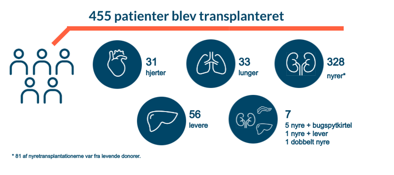 455 patienter fik i 2025 ét eller flere organer transplanteret fra danske og udenlandske donorer.